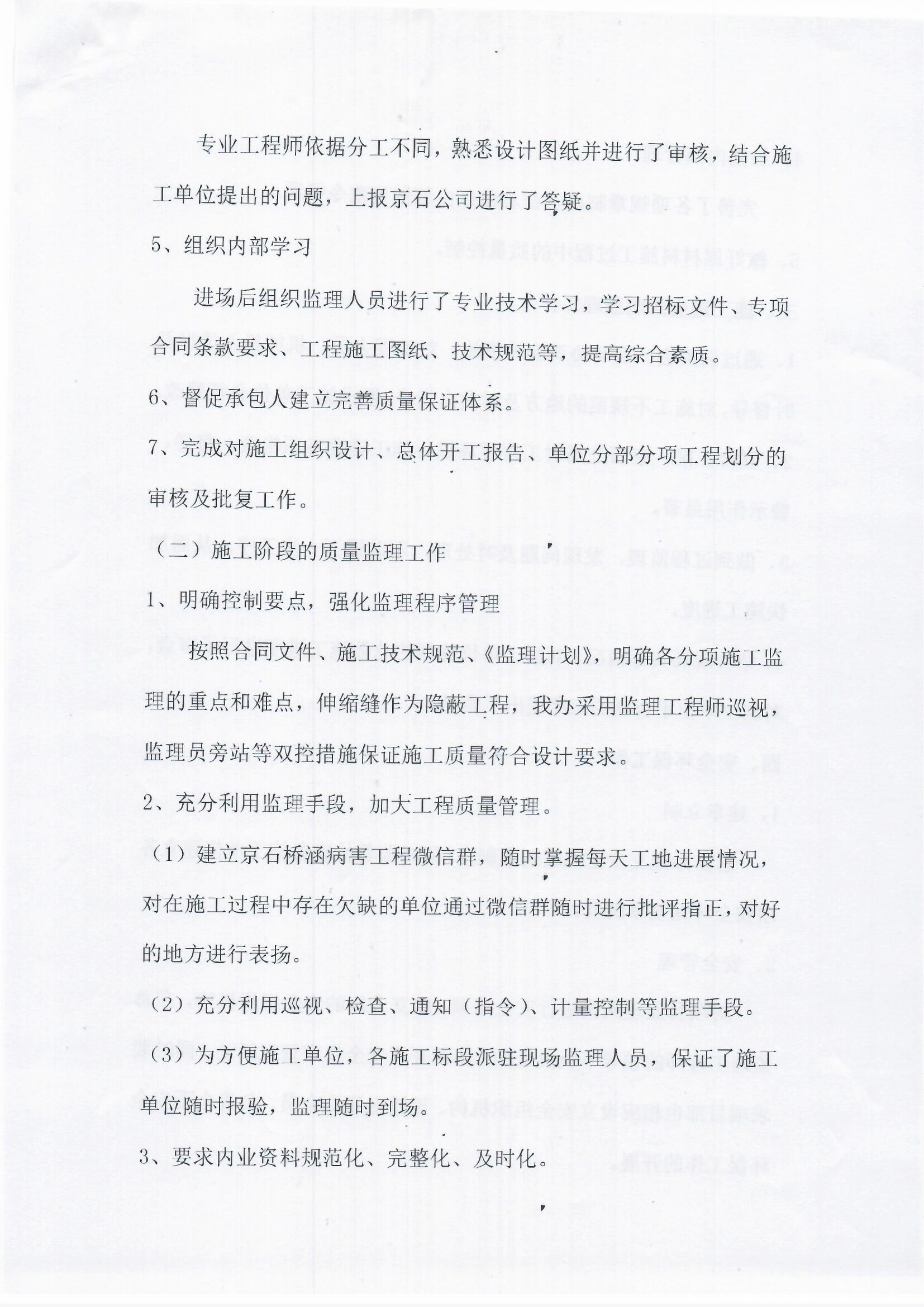 京港澳高速公路京石段2022年橋涵病害維修處治工程監(jiān)理報告