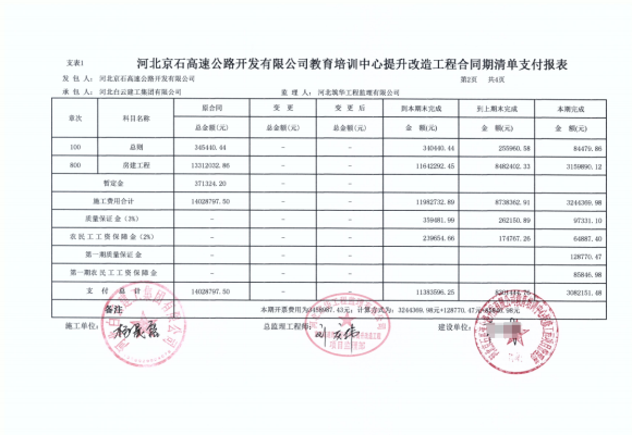 河北京石高速公路開(kāi)發(fā)有限公司教育培訓(xùn)中心提升改造工程三期支付證書(shū)