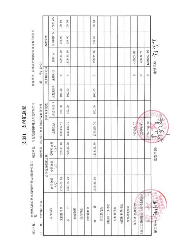 沙河特大橋樁基防護(hù)應(yīng)急工程支付證書(shū)