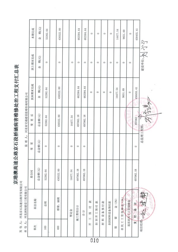 2022年橋涵病害維修處治工程QH-2標(biāo)支付證書