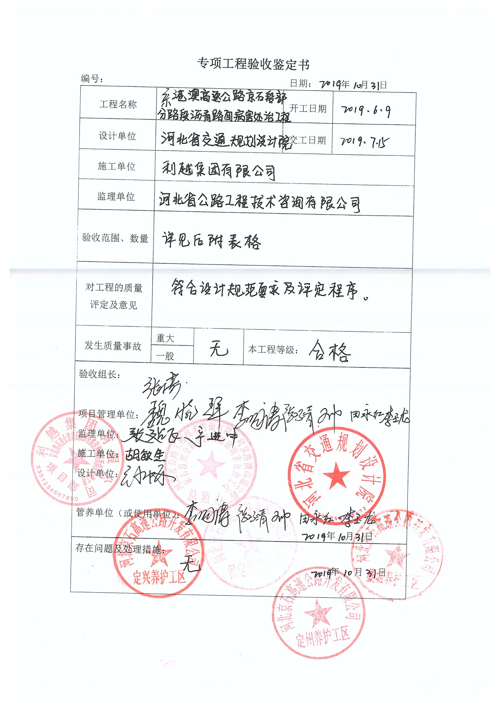 京港澳高速公路京石段部分瀝青路面病害處治工程專項(xiàng)鑒定書