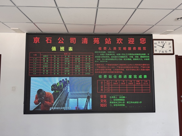 在收費站辦公區(qū)、宿舍等顯著位置張貼宣傳海報,海報內(nèi)容涵蓋總體國家安全觀的內(nèi)涵、危害國家安全的行為等,以直觀的畫面和簡潔的文字吸引過往人員的關注。利用單位大屏幕滾動播放國家安全宣傳視頻,向職工和來訪人員普及國家安全知識,加深了大家對國家安全的理解。