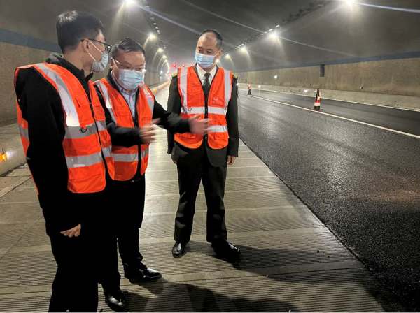 此次施工項目為隧道內瀝青薄層罩面,考察人員在施工現(xiàn)場觀摩了瀝青薄層施工工藝流程,詢問了施工中的注意事項和細節(jié)問題,施工單位負責人現(xiàn)場進行解答,并介紹了薄層罩面施工工藝的特色和優(yōu)點??疾烊藛T和施工單位技術人員對瀝青薄層罩面施工工藝特點、環(huán)保特性,質量控制點、工期進度、安全措施保障等方面進行交流研討。