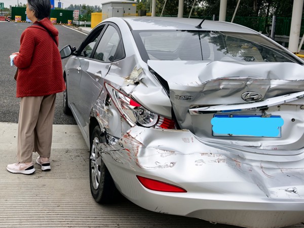 10 月 16 日午時,涿州收費(fèi)站外廣場,一輛銀色轎車尾部受損、外觀狼藉。車旁,一對剛從北京醫(yī)院返程的老夫妻滿臉焦急,不知如何是好。