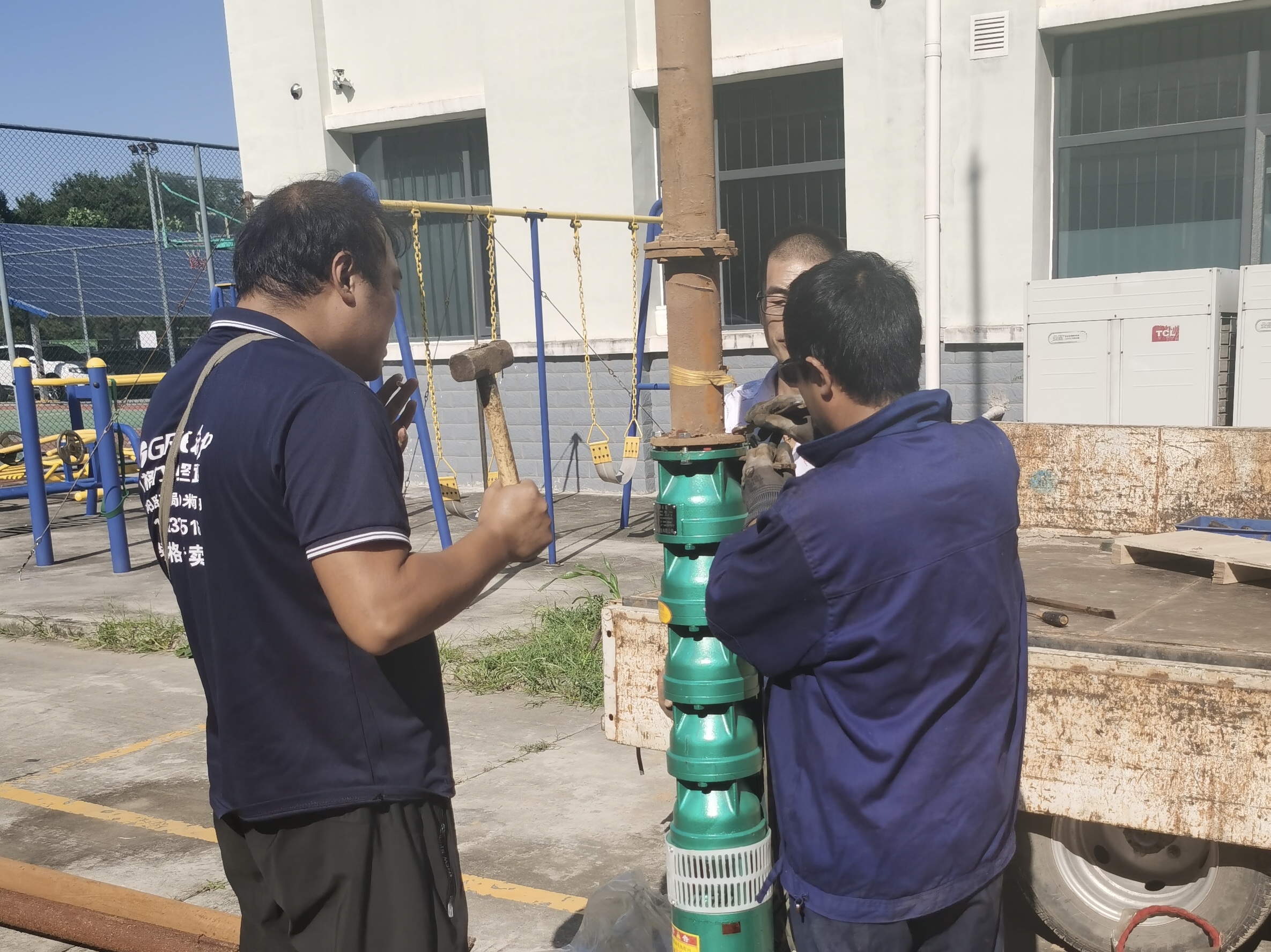 因站內(nèi)有部隊(duì)人員臨時(shí)駐訓(xùn),停水將影響官兵及本站員工生活秩序,站領(lǐng)導(dǎo)高度重視,遂立即帶領(lǐng)值班人員排查供水管道及設(shè)備間,同時(shí)向公司部門報(bào)備并獲得公司辦公室大力支持,同步聯(lián)系專業(yè)維修人員緊急支援。經(jīng)檢測(cè),停水系站內(nèi)水井潛水泵老化燒毀所致,需要換新水泵。