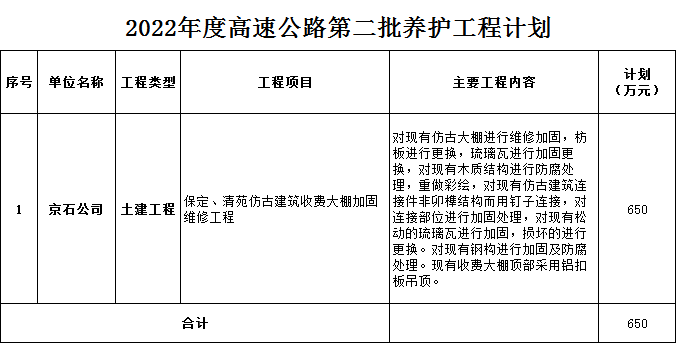 2022年第二批養(yǎng)護(hù)工程計劃