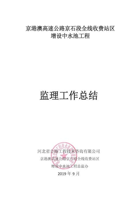 全線收費(fèi)站區(qū) 增設(shè)中水池工程監(jiān)理報(bào)告