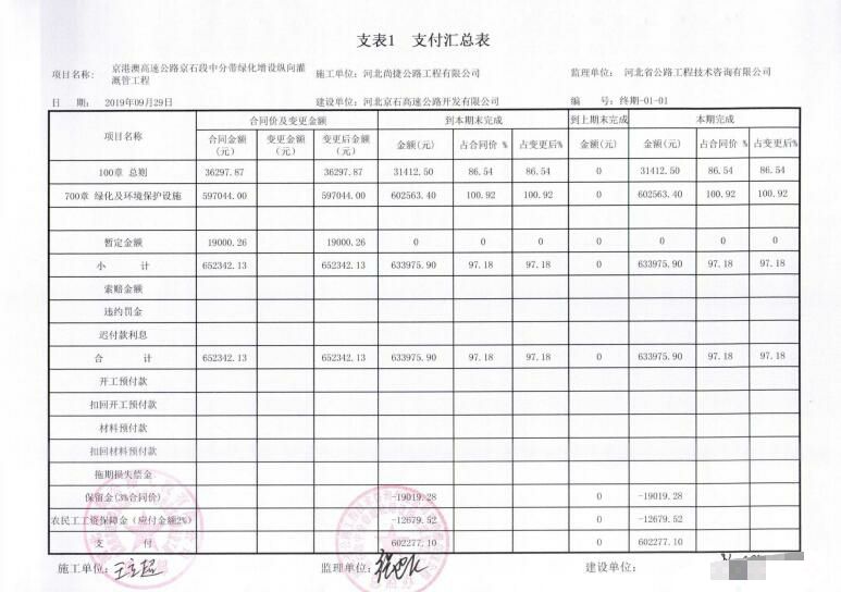 京港澳高速公路京石段中分帶綠化增設(shè)縱向灌溉管工程支付證書(shū)