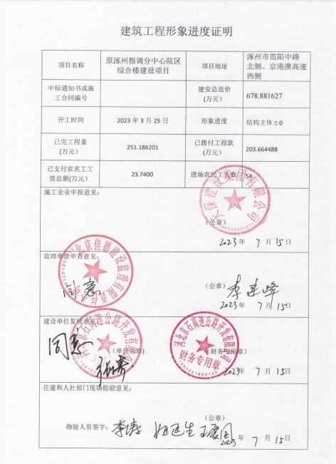 原涿州指調分中心綜合樓建設項目6月份農(nóng)民工工資發(fā)放公示