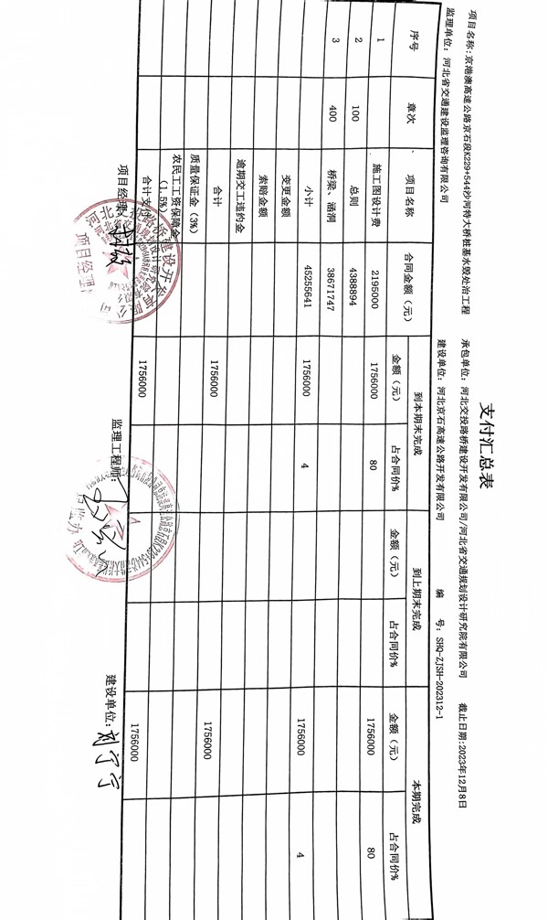 京港澳高速公路京石段K229+544沙河特大橋樁基水毀處治工程一期支付證書