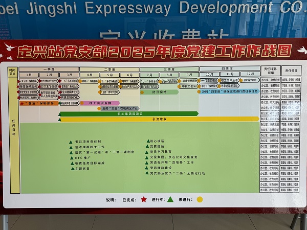 近日,在深入學(xué)習(xí)貫徹習(xí)近平新時(shí)代中國(guó)特色社會(huì)主義思想和黨的二十大及二十屆三中全會(huì)精神的基礎(chǔ)上,定興站黨支部以全面落實(shí)新時(shí)代黨的建設(shè)總要求和黨的組織路線為指引,對(duì)照支部工作責(zé)任清單,制定印發(fā)《定興站黨支部2025年度黨建工作作戰(zhàn)圖》,明確今年黨支部八個(gè)方面的工作要點(diǎn),進(jìn)一步謀深抓實(shí)價(jià)值黨建工作,以實(shí)際行動(dòng)走好踐行價(jià)值黨建的“第一方陣”。