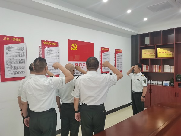 “我志愿加入中國(guó)共產(chǎn)黨,擁護(hù)黨的綱領(lǐng)……”在鮮紅的黨旗下,徐水站黨支部為支部黨員舉辦“迎七一”政治生日儀式。全體黨員重溫入黨誓詞,支部書(shū)記向過(guò)政治生日的黨員發(fā)放“政治生日學(xué)習(xí)教育書(shū)籍”。