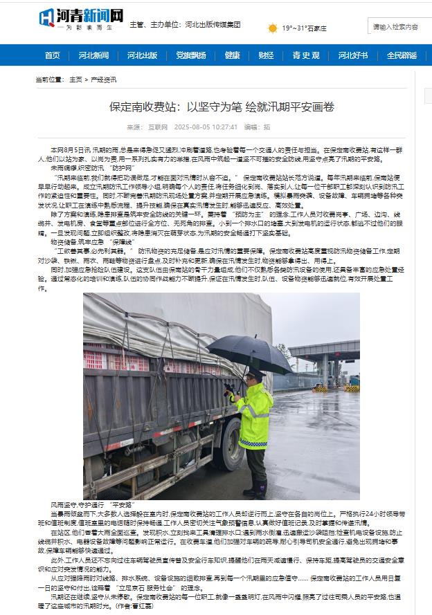 【河青新聞網】保定南收費站:以堅守為筆 繪就汛期平安畫卷
