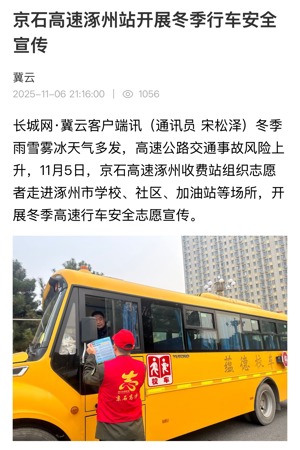 【長城網(wǎng)冀云】京石高速涿州站開展冬季行車安全宣傳