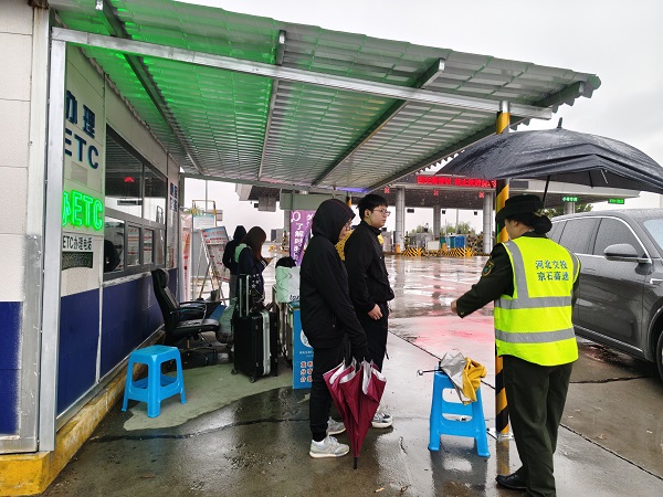 10月8日,國(guó)慶長(zhǎng)假的最后一天,伴隨著深秋的中雨,迎來(lái)了車輛返程的最高峰。在人們匆匆歸家的路上,各高速公路收費(fèi)站也迎來(lái)了中班最為忙碌緊張的時(shí)刻。雨絲紛飛,車流如織,但在一片繁忙中,一幕幕溫情的場(chǎng)景正在京石高速公路定興收費(fèi)站上演。