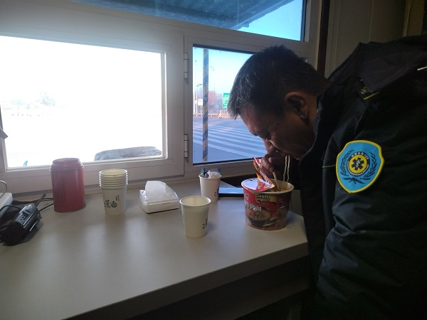 天氣寒冷,工作人員將司機(jī)請(qǐng)到便民服務(wù)站休息,為他遞上了一杯熱水,在得知他還沒吃早飯后又給他端來(lái)熱騰騰的泡面,司機(jī)吃著面,緊張的情緒也得到了緩解。不久,維修人員趕到現(xiàn)場(chǎng),很快查明了故障原因并進(jìn)行了快速修復(fù)。看著重新啟動(dòng)的救護(hù)車,司機(jī)師傅緊握工作人員的雙手,連聲道謝:“太感謝你們了!要不是你們幫忙,不知道要耽誤多久,萬(wàn)一有緊急任務(wù)就麻煩了!”
